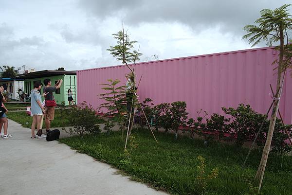 原來就是一個空地,有許多漆成不同顏色的貨櫃屋,大家以貨櫃為背景照相,